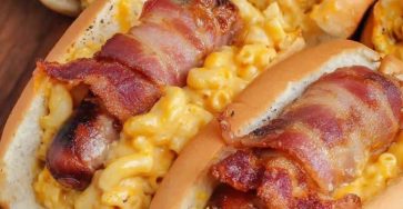 Air Fryer Bacon Mac & Cheese Dogs Crispy Bacon-Wrapped Hot Dogs Stuffed with Creamy Mac & Cheese These…