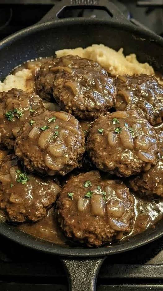 Unlike ordinary hamburger patties, Salisbury steak is carefully seasoned, shaped into oval steaks, and cooked gently in gravy, allowing the meat to stay moist and flavorful. Paired with mashed potatoes, rice, or buttered vegetables, this meal feels both nostalgic and indulgent—perfect for cozy evenings or weekend meals.