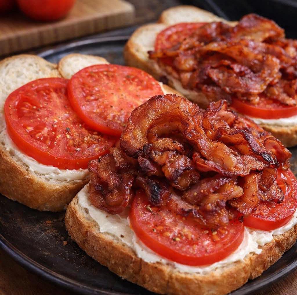 Spread an even layer of mayonnaise or cream cheese on one side of each slice of toasted bread. This adds creaminess and helps balance the saltiness of the bacon. - Add the tomatoes: