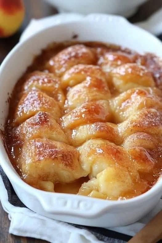 This Peach Dumpling Bubble Up is a fun, comforting dessert that transforms classic peach dumplings into an easy, crowd-pleasing bake. Soft biscuit pieces “bubble up” as they bake, soaking in a warm cinnamon-butter sauce and juicy peaches to create a gooey, golden dessert that tastes like peach cobbler meets dumplings. It’s simple to prepare, incredibly cozy, and perfect for potlucks, family dinners, or lazy weekends.