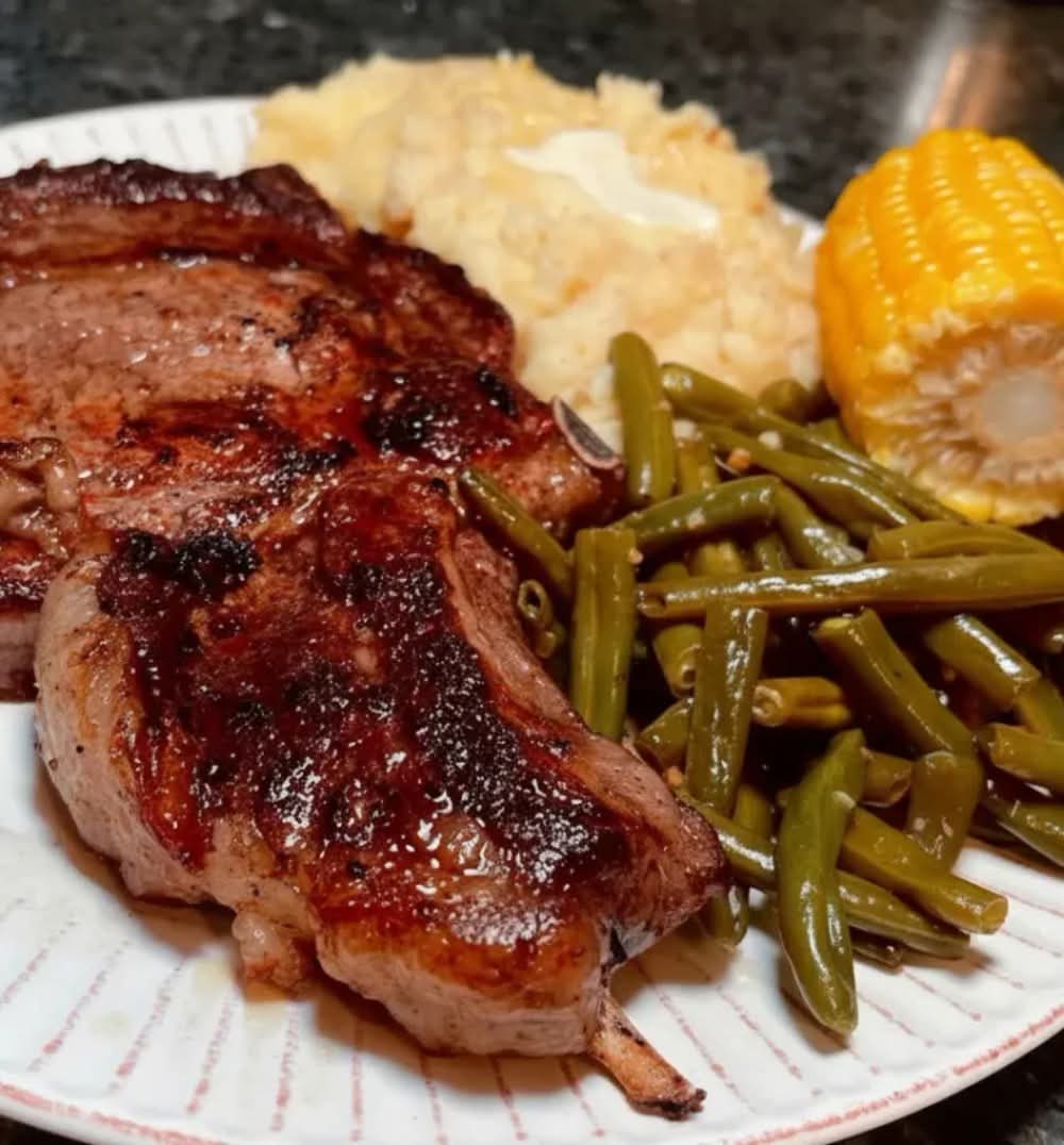 This Pan-Seared Pork Chops dinner is a classic, comforting, and well-balanced meal that brings together juicy pork chops, tender green beans, creamy mashed potatoes, and sweet corn on the cob. It’s the kind of hearty, home-style plate that feels like a Sunday dinner but is easy enough for a weeknight.
