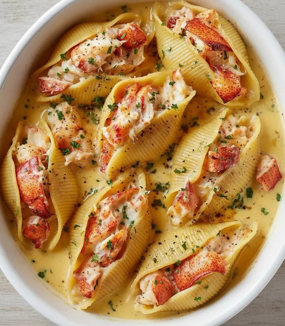 Garlic Butter Lobster-Filled Jumbo Pasta Shells are a luxurious yet approachable dish that combines tender lobster meat, rich garlic butter, creamy cheese filling, and perfectly cooked jumbo pasta shells. This recipe delivers bold seafood flavor with a smooth, indulgent texture—ideal for special occasions, romantic dinners, or when you want to cook something truly impressive.
