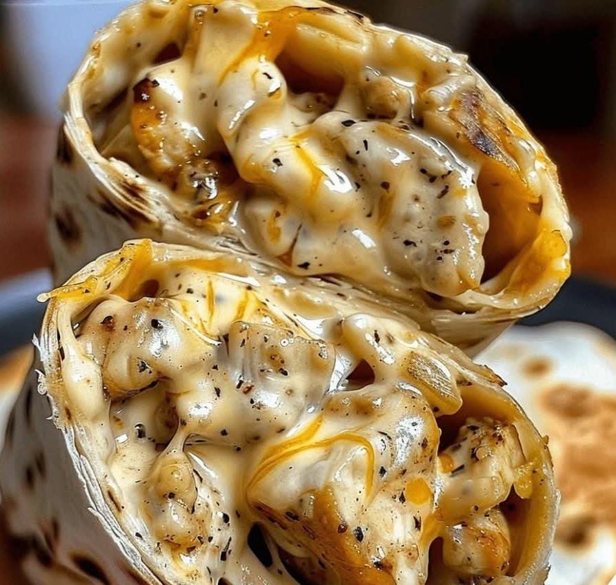 Creamy, Garlicky Chicken Wraps Loaded with Melted Cheese