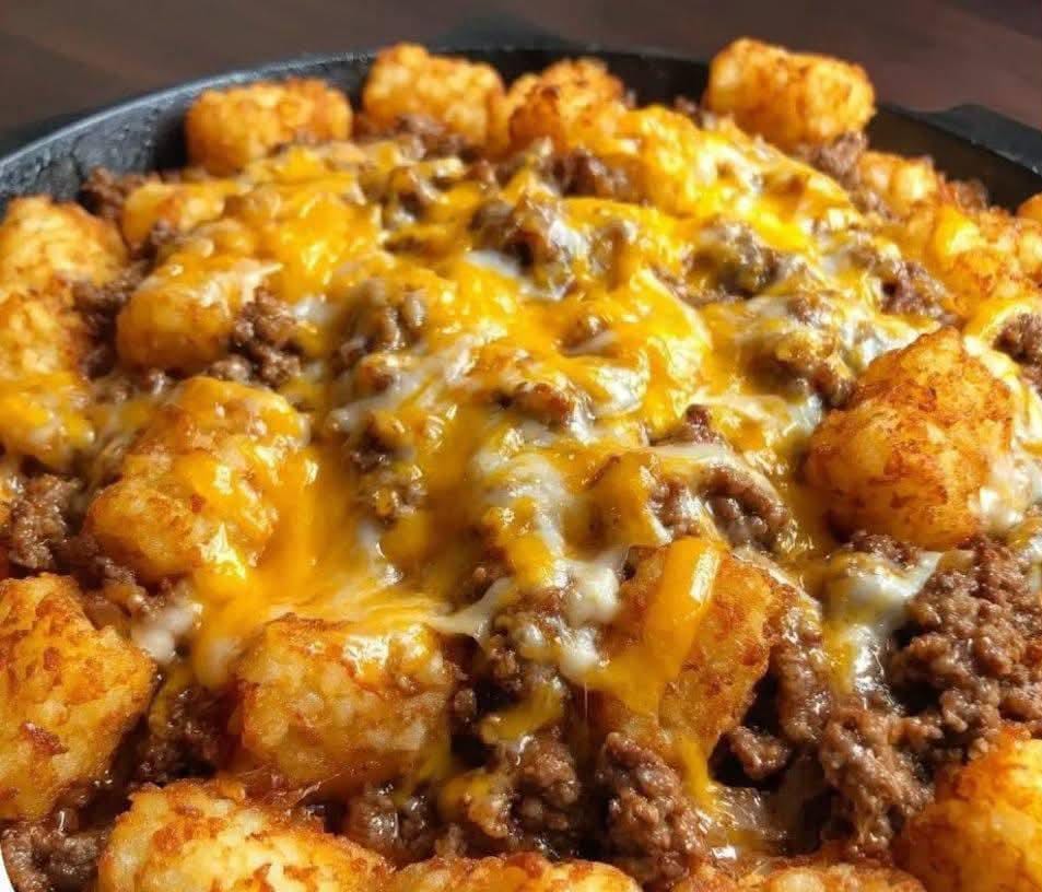 This Tater Tot Sloppy Joe Skillet is the ultimate comfort-food dinner. Juicy seasoned ground beef simmered in a rich sloppy joe sauce, topped with crispy golden tater tots and melted cheese—all made in one skillet. It’s easy, filling, and always a family favorite.