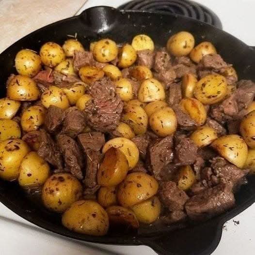 Juicy, perfectly seared steak paired with crispy golden baby potatoes and finished with rich, herb-infused garlic butter — all cooked in one skillet. It’s comforting, simple, and incredibly satisfying.