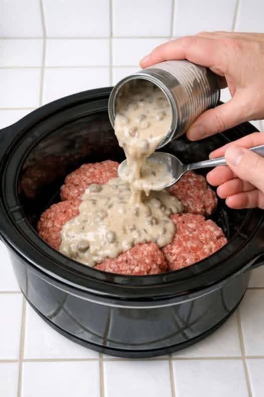 - Combine cream of mushroom soup and onion soup mix.