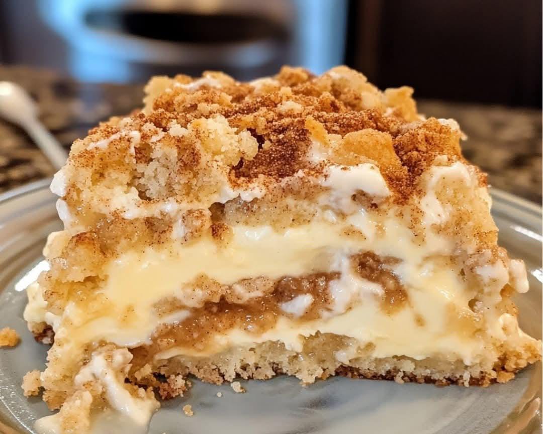 The combination of a buttery crumble base, sweet cinnamon cream cheese filling, golden crumb topping, and a delicate sugar glaze creates a dessert that is comforting, rich, and completely irresistible.