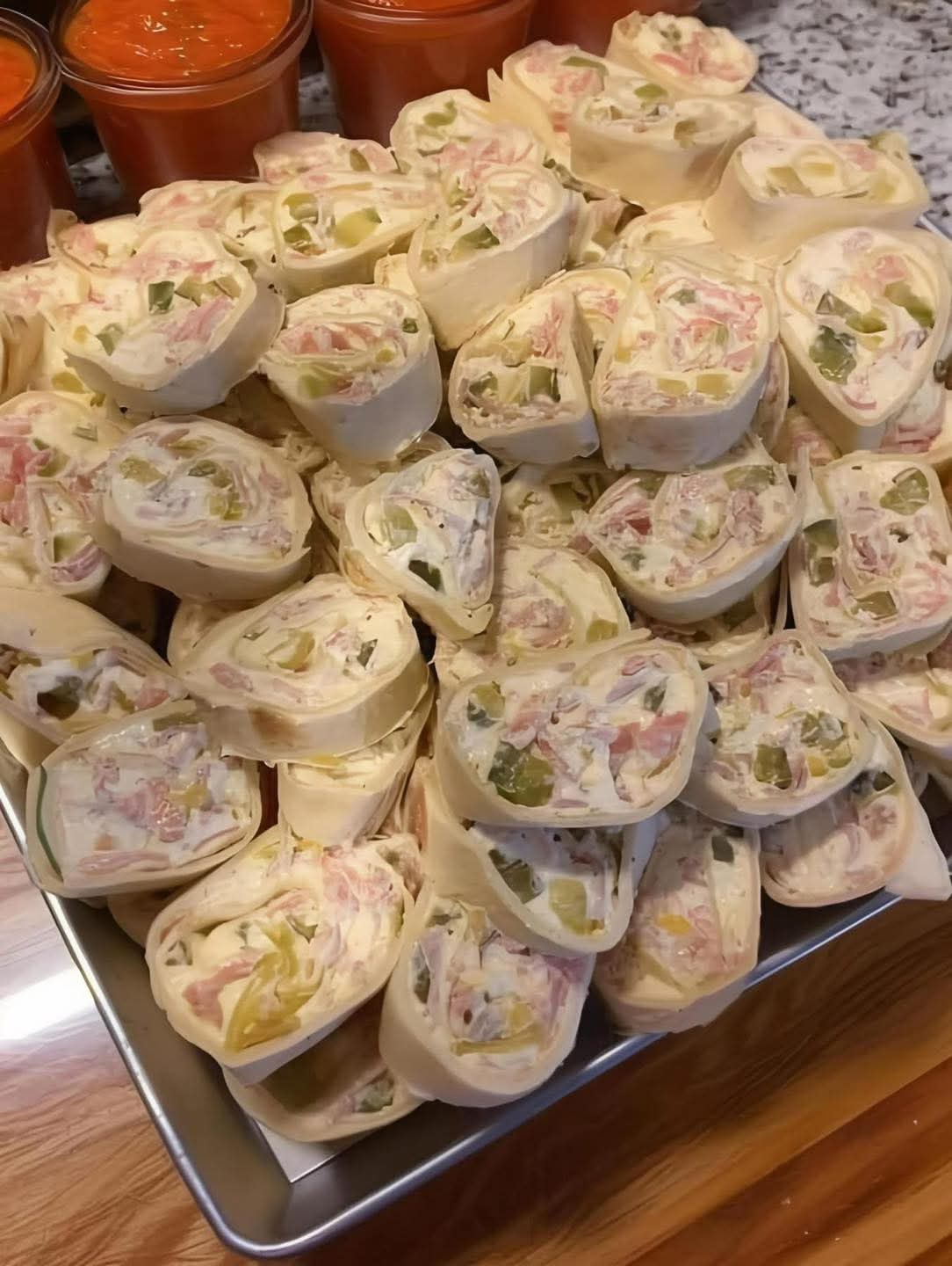 These pinwheels are inspired by classic Mexican and Tex-Mex flavors — tender shredded chicken, smooth cream cheese, tangy yogurt or rich mayonnaise, warm spices, and fresh vegetables — all rolled inside soft flour tortillas. When sliced, they reveal a stunning spiral pattern that makes them look as good as they taste.