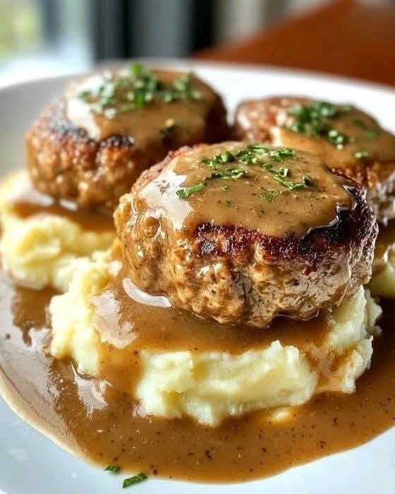If you’re looking for a comforting, hearty meal that is easy to prepare and full of flavor, Slow Cooker Salisbury Steak with Garlic Herb Gravy is a perfect choice. This classic American-style dish features tender beef patties slowly cooked in a rich, savory gravy infused with garlic and herbs. Because it cooks slowly, the meat becomes incredibly juicy and flavorful, making it an ideal dinner for busy days when you want a homemade meal without spending hours in the kitchen.