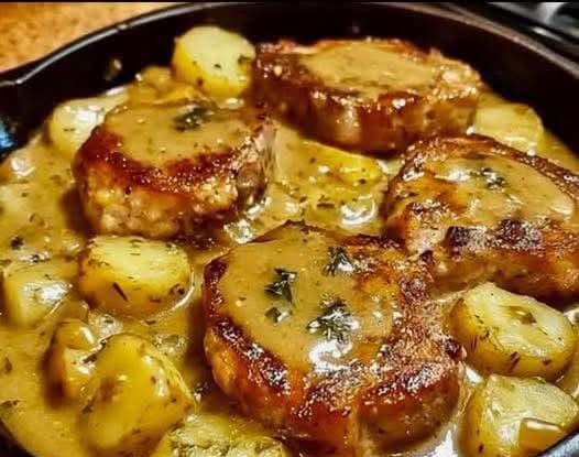 Smothered Pork Chops with Potatoes – Tender, Juicy & Loaded with Flavor
