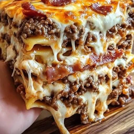 You’ll get a creamy, cheesy, and savory lasagna with a smoky bacon flavor and a rich garlic parmesan sauce. Every bite feels like a cheeseburger turned into a warm, comforting baked dish
