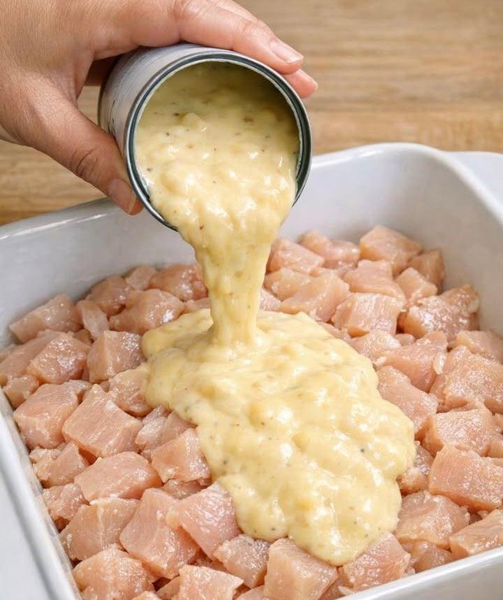 - Add the cream of chicken soup