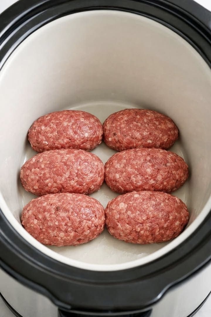 Place the patties in the bottom of your slow cooker in a single layer if possible. Then pour the sauce mixture evenly over the top.