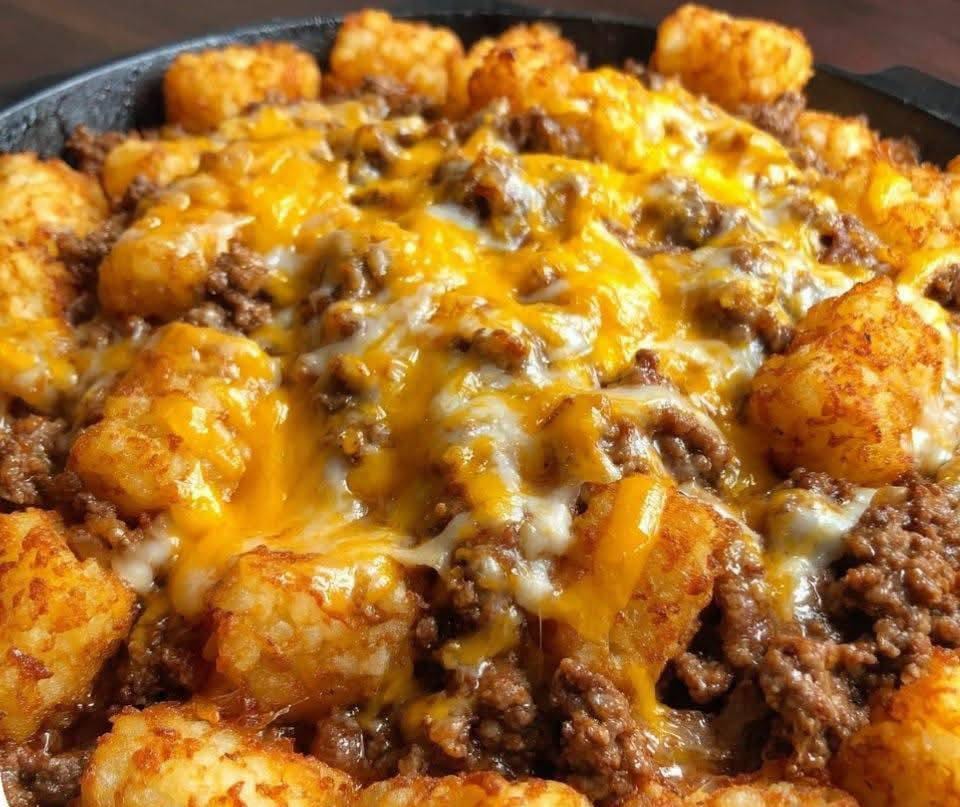 This Tater Tot Sloppy Joe Skillet is the ultimate comfort-food dinner made in one pan. Crispy golden tater tots are layered over savory sloppy joe–style ground beef, then finished with gooey melted cheese for a meal that’s hearty, satisfying, and impossible to resist.