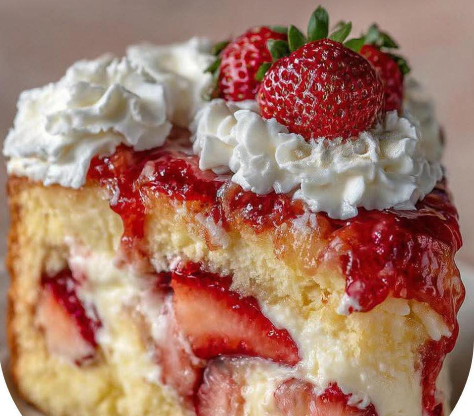 A stunning dessert made with layers of soft vanilla cake, creamy cheesecake, and fresh strawberry filling. Perfect for celebrations or when you want an impressive homemade cake.