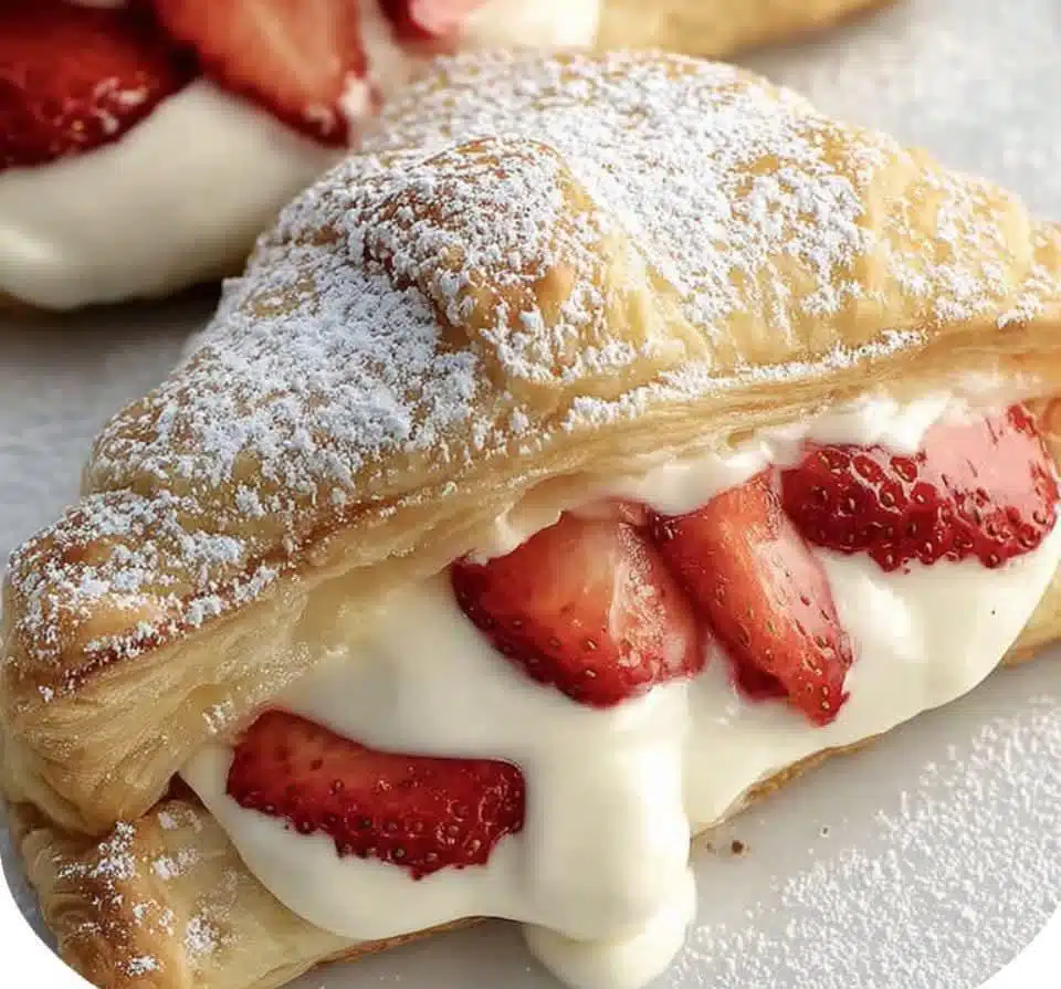 A bakery-style dessert made at home: ultra-flaky puff pastry wrapped around a smooth vanilla cheesecake filling and sweet, juicy strawberries. These turnovers are elegant enough for guests, yet easy enough for a weekend treat.